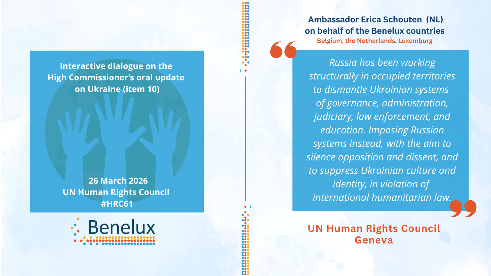 - UNITED NATIONS HUMAN RIGHTS COUNCIL - 52nd SESSION : Interactive Dialogue on the High Commissioner’s oral update on Ukraine - Speech | 31-03-2023